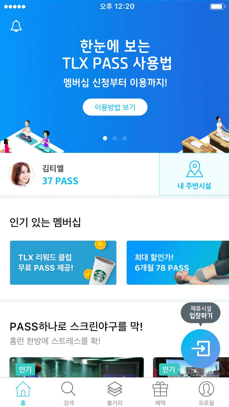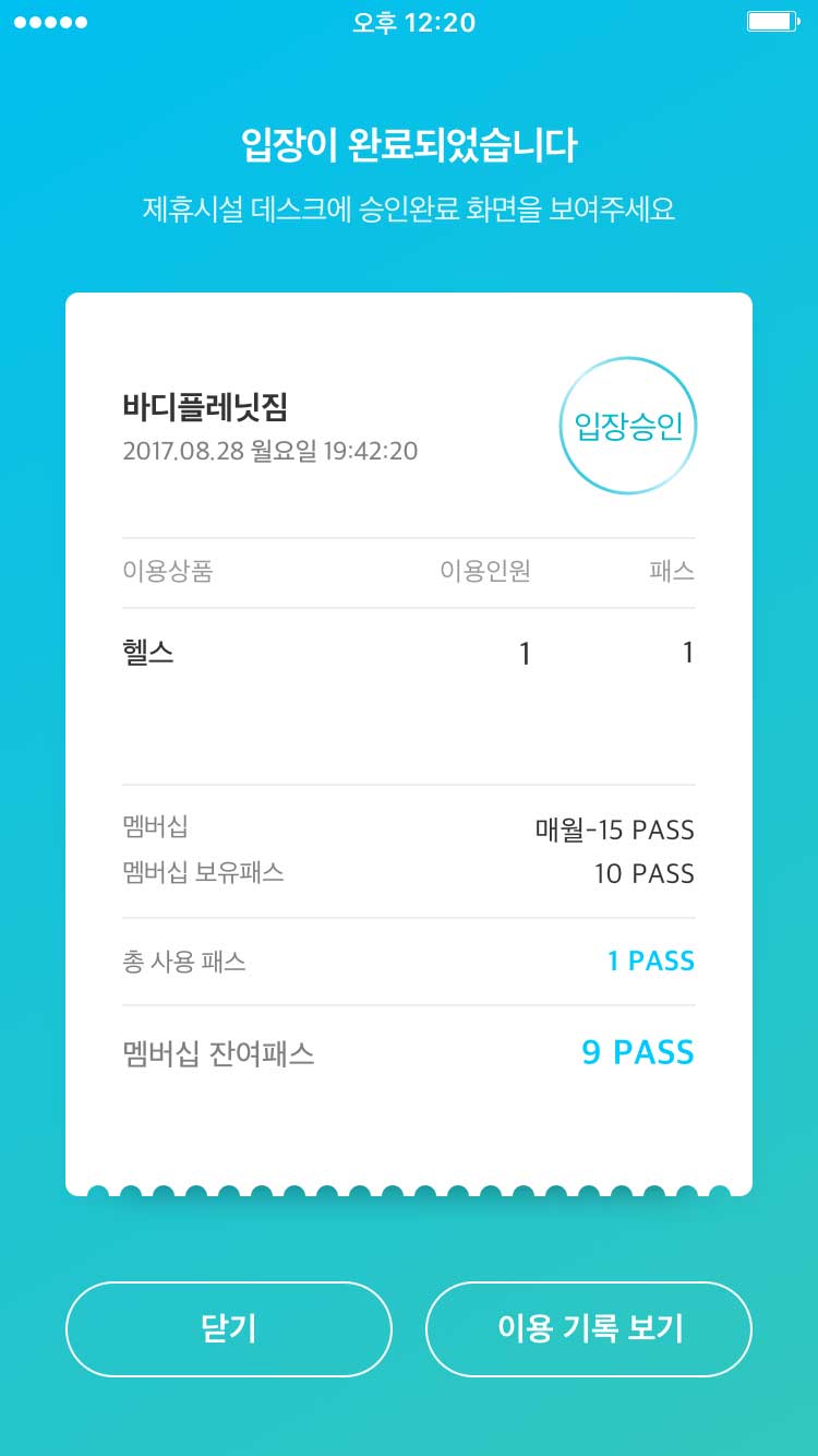 이용 종목과 차감될 패스 확인 후 모바일 앱 인증으로 간편하고 편리하게 입장하세요!