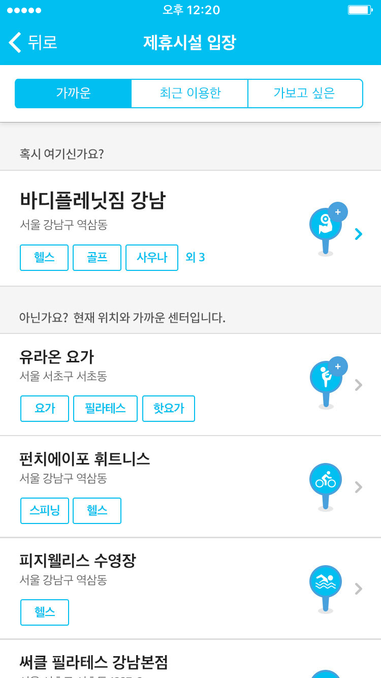 오늘은 강남으로 운동하러 가실까요? 이 제휴시설은 어떻게 이용하죠?